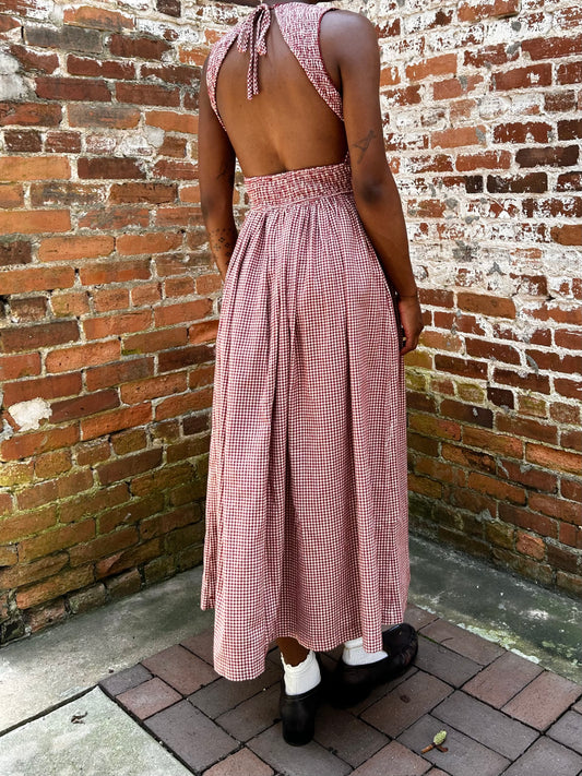 Linen Midi Dress with O-Ring Metal Accent Cut Out