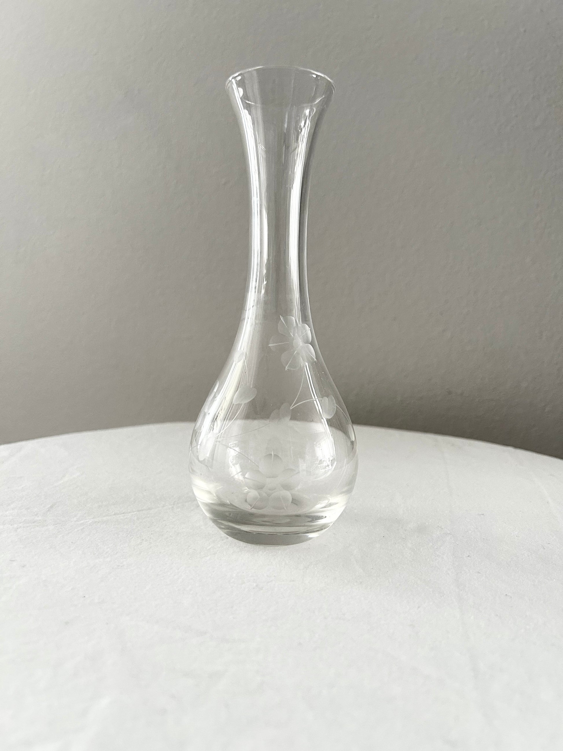 Floral Etched Glass Vase